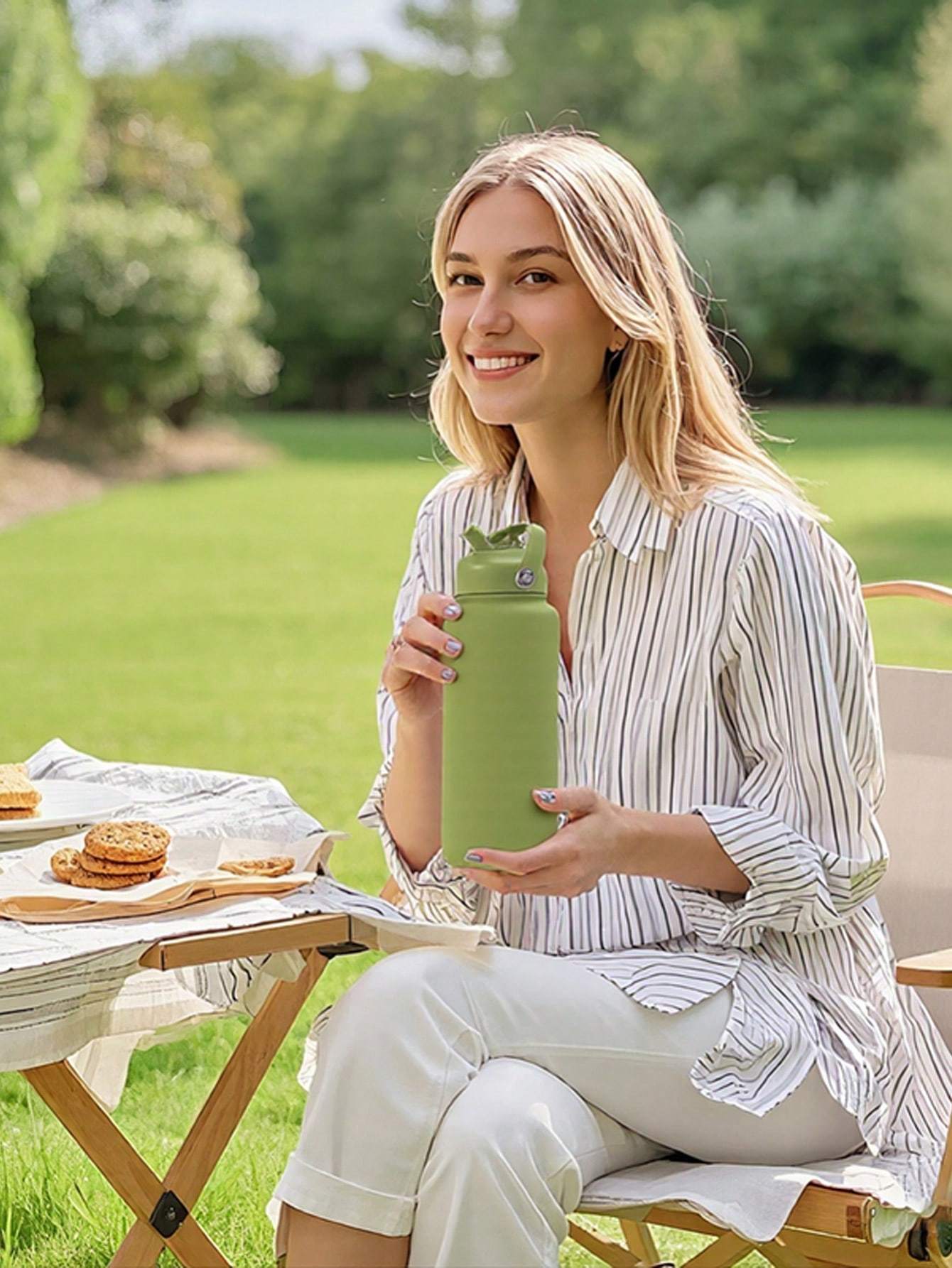 Sports Water Bottle With Portable Handle, Straw, Stainless Steel, American-style, Wide-mouth, Thermal Insulation Cup